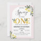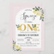 Arch Floral Nosso primeiro aniversario de Expressão Principal Convite Léon Cuto temeu nosso principal convite de aniversário espremendo apresentando vários arranjos florais e limão, um arco branco e uma palavra de ouro falsa. Este primeiro convite de aniversário para meninas é ideal para uma festa de aniversário de verão.
