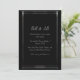 Faça uma declaração ousada com este "Convite para Casamento Negro Art Deco com Fronteira Geométrica de Prata." Apresentando um fundo negro profundo e uma elegante linhagem de prata inspirada no estilo vintage art deco, essa design exumenta o luxo do eterno e a sofisticação moderna. Perfeito para casamentos formais, assuntos de gravata negra ou comemorações inspiradas em Gatsby, o traçado elegante destaca seus detalhes de casamento em um roteiro de cinzas polidas. Totalmente personalizável para se adequar à sua visão de evento exclusiva.