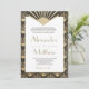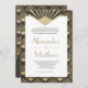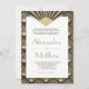 Volte ao Excelente Gatsby Roaring Twenties com este convite de casamento personalizado ao estilo Art Deco, de cor dourada. Mude facilmente as informações para as suas. Lá atrás estão os nomes da noiva e do noivo.
