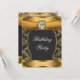 Belo ouro espirra convite de aniversário de arte preto e ouro. Este elegante convite de aniversário preto e dourado é facilmente personalizado para o seu evento simplesmente adicionando detalhes do seu evento, estilo de fonte, tamanho de fonte e cor e texto. Observe que todos os adesivos, cartões e designs de convite que você encontrará no Zazzle são gráficos impressos sem joias reais, arcos, levantados, gravados, ou peças ou peças adicionadas.