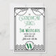 Um convite elegante ao estilo de Deco para a sua festa de relógio de corridas de cavalos para uma corrida de derby ou cavalos. Dois cavalos no topo do quadro do cartão. Gatsby vibe com tipografia vintage. Seu monograma, acentuado por ondas de fêmur, faz parte do design elegante. Os Roaring 20 nas corridas. Um convite clássico e espetacular para o seu maravilhoso evento glamouroso. Fundo branco com sotaque preto e verde. Todo texto pode ser personalizado.