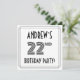 A frente deste na moda e do estilo 1920 dos anos 30 inspirou a design de 22 anos de celebração/convite de festas de aniversário com um nome editável, um rico de arte parece inspirado no número "22", a mensagem "FESTA DE ANIVERSÁRIO!" e uma fronteira de várias linhas. A parte traseira apresenta detalhes personalizados sobre o evento, como data, hora, local/local e quaisquer outras informações que possam ser relevantes. Convites elegantes, luxuosos e personalizados como estes podem ser usados para convidar convidados para uma festa de aniversário que comemora o 22º aniversário de alguém. [~Z0000614]
