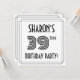 A frente deste elegante design de 39 anos de celebração/cartão de convite de festas apresenta um nome personalizável, um intrincado deco de arte parece inspirado número "39", a mensagem "FESTA DE ANIVERSÁRIO!" e uma fronteira multilinha. A parte traseira apresenta detalhes personalizados sobre o evento, como data, hora, local e quaisquer outras informações que possam ser importantes. Convites luxuosos, elegantes e editáveis como estes podem ser usados para convidar convidados/participantes a uma reunião/festa de aniversário para honrar o 39º aniversário de alguém. [~Z0000614]