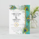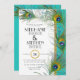 Rich aqua turquesa azul fundo e tiras laterais misturam-se e combinam-se com as outras cores neste conjunto para uma apresentação bela e única. Ideal para uma celebração de casamento indiana, estas penas de pavão foram pintadas à mão pela artista Audrey Jeanne Roberts para uma elegante e sofisticada design. O estilo clássico funciona bem com a tipografia da era Art Deco, com fontes vintage simples e impressionantes. Um simples círculo de brilho dourado destaca o dia do seu casamento junto com uma banda listrada à direita. A cor de fundo da faixa de cores e do lado traseiro pode ser alterada para qualquer cor que você quiser. Basta selecionar "Personalizar" e procurar "Cor de fundo impressa". Audrey Jeanne Roberts, todos os direitos reservados.