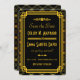 Esses save the dates apresentam uma paleta de cores preta e dourada, uma moldura geométrica, padrões geométricos e outros detalhes estilísticos, todos inspirados no Art Deco e nos loucos anos vinte. Você pode personalizar os campos de texto de exemplo ao seu gosto.