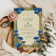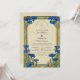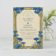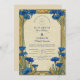 Um refinado Art Nouveau inspirou design de casamento com flores azuis marcantes, enquadradas em detalhes botânicos do ouro. A elegância vintage aliada a fortes sotaques florais cria um eterno, mas artístico, perfeito para casais que buscam um estilo de casamento sofisticado e romântico.