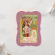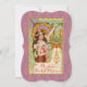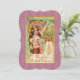 Este cartão postal elegante Art Nouveau anuncia a chegada da primavera. É uma exibição luxuriante de cores, padrões e flores. Uma jovem toca um galho de árvore florido em meio a suportes, bordas e pingentes estilizados. A imagem original foi combinada com um fundo padronizado para complementar as cores e o design do cartão postal vintage. Uma área para texto permite personalização.