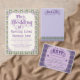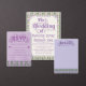 An elaborately detailed Art Nouveau wedding invitation featuring a purple thistle scroll and vine striped pattern on a light purple background. A pairing of elegant fonts has been carefully selected to accompany this invitation's decorative floral announcement text, however, they can be changed to meet your needs. You can also change their colors, as well as the color of the announcement text.