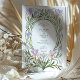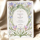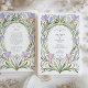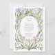 Adotar a elegância eterno da era Art Nouveau com este convite de casamento, que foi concebido de forma elegante. O cartão é adornado com um quadro simétrico de florais de aquarela pintados à mão em tons suaves de azul-piscadinho, lavanda e rosa, graciosamente entrelaçados com caules verdes fluentes. Os detalhes do seu casamento são lindamente apresentados dentro de uma forma oval clássica, acentuada com uma delicada borda de ouro falso. Esta design artística e romântica é perfeita para um sofisticado casamento de jardins, uma celebração temática vintage, ou para qualquer casal que deseje um toque de talento artístico clássico. Todo o texto, incluindo o monograma, é perfeitamente personalizável para anunciar perfeitamente o dia especial.