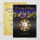 Se você vai se casar em Las Vegas, vai adorar este convite de Save the Date glamouroso e único. Floreios dourados esvoaçam em um fundo azul real e preto. O ponto central do convite é uma ficha de cassino azul e dourada que você pode personalizar com seus nomes. Use o botão "Personalizar" para adicionar seu próprio texto na frente e no verso do convite. Para dar ainda mais brilho, escolha o papel de linho ou gelo metálico. Convites de casamento, convites de recepção, cardápios de jantar, adesivos de lembrancinhas, cartões de agradecimento, ímãs de ficha de cassino, cartões de resposta RSVP e selos postais combinando também estão disponíveis. Para perguntas, ajuda ou pedidos personalizados, envie um e-mail para: glamprettyweddings.com/contact. Design original "Art Nouveau Vegas" por Cheryl Daniels © 2013