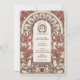 Este elegante convite para o casamento Art Nouveau apresenta um sofisticado design em tons de burgundy, marfim mole e verdes mudados. As formas florais insípidas, incluindo os delicados florins brancos e os exuberantes florescentes, estão entrelaçadas com as vinhas e os detalhes dos ornamentados, incorporando a beleza eterno do estilo Art Nouveau. O sutil fundo bege melhora os tons quentes, criando uma estética romântica e vintage. Com um texto personalizável enquadrado por este design luxuoso, este convite é perfeito para casamentos formais, inspirados em vintage ou de temas naturais.
