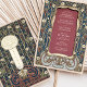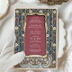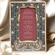 Este belo convite para o casamento Art Nouveau apresenta uma combinação espantosa de burgundy profunda, azul-marinho e motivos florais dourados, evocando a elegância do eterno. As flores brancas deliciosas entrelaçam-se com as vinhas graciosas, colocadas contra uma estrutura ornamentado dourada com detalhamento intrincado. A paleta de cores ricas e a estética vintage tornam este convite perfeito para o outono, inverno ou casamentos clássicos. Um refinado equilíbrio de simetria, arte floral e sotaques metálicos acrescenta um toque luxuoso, garantindo que sua papelaria de casamento seja sofisticada e memorável.