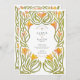 Volte no tempo com este belo convite de casamento artístico, profundamente inspirado pela elegância do movimento Art Nouveau. Este design apresenta um quadro cativante de lírios estilizados numa paleta quente de cor laranja, amarela e pêssego mole. Intriciar, e fluir, o entrelaçamento de vinhas verdes para criar uma borda orgânica e atordoante que captura perfeitamente o espírito de colheita. Este convite é a escolha ideal para um casal sofisticado com amor por arte e história, perfeito para um elegante casamento de outono ou uma celebração única de jardim. O painel central fornece um cenário clássico para seus detalhes de casamento totalmente personalizáveis, prometendo uma primeira impressão inesquecível.