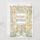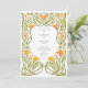 Volte no tempo com este belo convite de casamento artístico, profundamente inspirado pela elegância do movimento Art Nouveau. Este design apresenta um quadro cativante de lírios estilizados numa paleta quente de cor laranja, amarela e pêssego mole. Intriciar, e fluir, o entrelaçamento de vinhas verdes para criar uma borda orgânica e atordoante que captura perfeitamente o espírito de colheita. Este convite é a escolha ideal para um casal sofisticado com amor por arte e história, perfeito para um elegante casamento de outono ou uma celebração única de jardim. O painel central fornece um cenário clássico para seus detalhes de casamento totalmente personalizáveis, prometendo uma primeira impressão inesquecível.