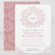Convite Arte de monograma de folha rosa bege recepção de c