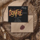 Uma ilustração digital de um convite de festa de formatura da fogueira, renderizada em um estilo laranja e amarelo ardente, semelhante a chamas.
