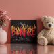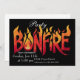Uma ilustração digital de um convite de festa de formatura com chamas de fogueira Um design gráfico com a palavra fogueira renderizada em letras negritas e flamejantes.