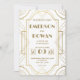 Convite Arte Deco editável branco e dourado Gatsby Anos 20