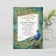 CONVITE DE ANIVERSÁRIO PARA QUALQUER ANO: "Convite de festa de aniversário Hollywood Glitter Dourado Pavão Art Deco". Estilo chique da era Great Gatsby, mas lindamente projetado de uma maneira que o destaca para eventos sofisticados. Esta coleção de casamento foi inspirada no Velho Hollywood e na era de glamour dos seus dias de glória. Um conjunto de convite de festa de aniversário perfeito para eventos e celebrações elegantes, sofisticados, formais modernos ou de gravata preta. Um clássico e lindo floreio de pergaminho ondulado em rico azul-teal e água-marinha fazem parte de um fundo de colagem que destaca o pavão solitário que olha para trás, para o texto do convite. No verso, há um conjunto de penas de cauda de pavão em leque, colado junto com close-ups de penas de pavão e desenhos