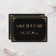 Cartões de convite de casamento redondos dourados e pretos no estilo art déco do Grande Gatsby com texto personalizável