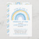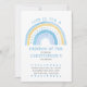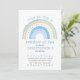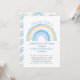 O convite de aniversário do Rainbow que você pode personalizar para qualquer idade. Design de arte de rabisco pastel de aquarelas com arco-íris rabiscado em tons de azul e amarelo. O design está escrito com "junte-se a nós para um arco-íris de diversão comemorando o aniversário do menino" na tipografia química seguida dos seus detalhes de convite. Simples, moderno, limpo e fresco - perfeito para o convite de aniversário de um jovem.