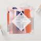 Arte moderna da PixDezines, pinceladas de aquarela em bloco de cor em rosa dourado falso, azul-marinho, laranja coral, verde espuma do mar, rosa suave, prata falso. Tendências de cores para convites de casamento para os jovens de coração. Nosso design dinâmico permite que você edite todos os elementos. Veja o link "personalizar" na janela pop-up de personalização.