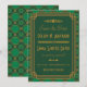 Esses save the dates apresentam uma paleta de cores verde esmeralda e dourado, uma moldura geométrica, padrões geométricos e outros detalhes estilísticos, todos inspirados na Art Déco e nos loucos anos vinte. Você pode personalizar os campos de texto de exemplo ao seu gosto.