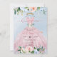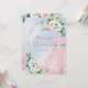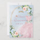Convite ArtsApp quinceanera -- vestido rosa bege cintilante, rosas cor-de-rosa bege e azul poeira aquarela, folhagem de eucalipto azul poeira e margaridas brancas polvilhadas com pó de ouro. Acentuado com pó de ouro. Todos os elementos são editáveis. Copyright © 2023 ArtsApp™. Todos os direitos reservados.