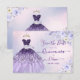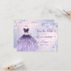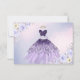 ArtsApp cartão de aviso prévio de quinceanera -- violeta ombre cintilante + vestido roxo lilás, rosas cor-de-rosa e azul-acinzentado em aquarela, folhagem de eucalipto azul-acinzentado e margaridas brancas polvilhadas com pó de ouro. Acentuado com pó de ouro. Todos os elementos são editáveis. Copyright © 2023 ArtsApp™. Todos os direitos reservados.