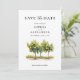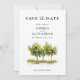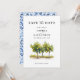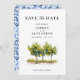 Anuncie seu dia especial com este elegante Cartão de Data Salve! A design apresenta uma bela ilustração aquosa de limoeiros na frente, capturando o charme do Mediterrâneo. As costas mostram um padrão italiano azul clássico. Perfeito para um casamento de verão ou destino!