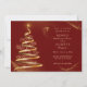 Convite Árvore de Natal elegante dourada vermelha casament