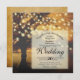 Este belo convite para o casamento apresenta uma árvore de outono com cordas de luz ao anoitecer impressas em papel imergênico falso e antigo. As lindas tonalidades de ouro e marrom o tornam perfeito para um casamento rústico ou country.