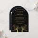 Crie o convite perfeito para o casamento com esta Árvore Dourada moderna em um fundo preto e adicione sua foto.