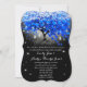 A Corda Romântica Ilumina Os Convites Em Grove Da Floresta Mason Jar. Algodão Russo Luxo Chic Royal Blue e Black Heart Tree Wedding Invitation Whimsical Magical Fairy Lights Love Birds mostradas em fundo negro, mas podem ser mudadas para qualquer cor. Alguns designs giros para melhorar as raízes do amor neste convite de casamento da floresta azul cobalto...