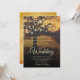 Este belo convite para o casamento mostra um design rústico com uma árvore coberta de cordas de luz no pôr do sol impressa em um fundo falso de pergaminho. As cores do tom de terra ouro marrom são perfeitas para uma cerimônia de outono, outono ou noite.