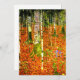 Cartão com a pintura de Gustav Klimt Casa de Fazenda com Árvores de Bétula (1903). Uma paisagem outonal de folhas laranjas numa floresta de bétulas com belas flores azuis. Um presente maravilhoso para fãs de Arte Nova e arte austríaca.