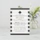Ace de Espadas Elegante no Convite de Chá de fraldas de Stripes. Esses convites clássicos com elementos pretos, brancos e dourados e um modelo de texto de rico estão prontos para você personalizar com suas próprias informações de celebração.