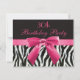 Os convites de festas feitos sob encomenda elegantes do aniversário de 30 anos das mulheres com uma zebra preto e branco elegante bonita imprimiram o teste padrão falsificado das listras da pele e um rosa quente bonito imprimiu o arco e a fita. Este glamoroso elegante convida é decorado ambos os lados. Convites femininos, chiques, na moda, modernos. NOTE POR FAVOR: TUDO CONVIDA EM ZAZZLE TEM IMAGENS IMPRESSAS DO PLANO. O texto, a pia batismal e a cor da pia batismal podem tudo ser personalizados. Se você precisa o auxílio que personaliza seu produto por favor contacte-me através de minha loja. Eu estarei feliz ajudar.