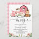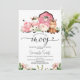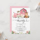Meninas Fazendas Vocês Ouviram O Chá de fraldas Moos Convidar a fazenda doce, o convite do chá de fraldas com uma cena de fazenda com um celeiro cor-de-rosa e um padrão de xadrez cor-de-rosa. O design apresenta quatro animais de fazenda bonitos e uma imagem de fonte de caligrafia removível. Este convite para chás de fraldas fazendas é uma forma doce de convidar convidados para o chá de fraldas de fazenda de uma garota.