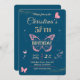 Convite Asas borboletas 5 cor azul de aniversário