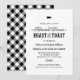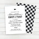 Convide seus convidados para uma divertida zombaria e brinde pré-casamento com este convite de jantar de ensaio em negrito e gráfico sóbrio sobre um fundo branco limpo. A tipografia mista ocidental e de roteiro combina com a silhueta de um porco preto e floreio infinito elegante para um visual rústico country. O forro xadrez preto combinando adiciona charme casual e festivo. Todos os nomes, datas e detalhes são totalmente editáveis. Perfeito para um jantar de ensaio de casamento no quintal, celeiro ou ao ar livre.
