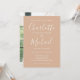 Com nomes de estilo de assinatura, este convite de casamento elegante pode ser personalizado com suas informações em letras brancas elegantes em um fundo bege com a foto escolhida no verso. Você pode personalizar a cor do fundo para combinar com o tema do seu casamento. Criado por Thisisnotme©