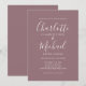 Elegante convite de casamento com fonte de assinatura apresentando nomes no estilo de assinatura, este convite de casamento estiloso em tons de mauve e branco pode ser personalizado com suas informações em letras brancas chiques. Concebido por Thisisnotme©