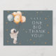 This first birthday thank you card features a hand-painted astronaut holding balloons with scattered stars on a muted blue background. The phrase “One Big Thank You” ties into a countdown-inspired first birthday theme. The artwork colors are not editable, but all text can be personalized to match your celebration.