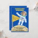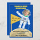 Um design bonito e divertido de um Astronauta pousando em uma lua com um convite para seu dia especial, opções personalizadas são incluídas.