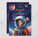 Precisa de ideias festas de aniversário para o seu filho? Este espetacular convite de aniversário fotográfico para rapazes com tema astronauta e espacial, com ilustração de um astronauta em espaço profundo com um modelo fotográfico no visor, flutuando entre planetas, é apenas o bilhete. Celebre o seu profundo astronauta com estes planetas e o convite para o espaço profundo que o fará feliz, se ele for louco por todas as coisas planetas, foguetes, espaço e trajes de astronauta.
