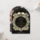 Este convite de casamento gótico com caveiras em arco 'até que a morte nos separe' preto e dourado pode ser personalizado com suas informações em tipografia elegante e foto no verso. Criado por Thisisnotme©