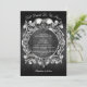 Este convite de casamento de caveiras góticas 'até que a morte nos separe' pode ser personalizado com suas informações em tipografia elegante em um fundo de madeira rústica preta e foto no verso. Projetado por Thisisnotme©