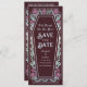 Faça uma declaração ousada de amor eterno. Este casamento gótico "Save-The-Date" apresenta "Till Death Do Us Part" em um quadro em forma de caixão, enfeitado com espinhos, rosas e sotaques prateados contra um fundo vermelho rico. Perfeito para uma comemoração romântica assombrosa! Personalize o texto, a fonte e a cor de fundo para se adequar às suas preferências de design. Correspondência de Itens em nosso compro para um tema completo de festa. Observe que a prata nos cartões NÃO é uma folha real e é impressa em cores planas.