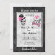 Convite de casamento Até que a Morte nos Separe com caveiras com cartola e flores, ossos. As cores são preto, rosa, branco e cinza. O fundo tem padrões de diamante. Perfeito para um casamento gótico ou de Halloween.